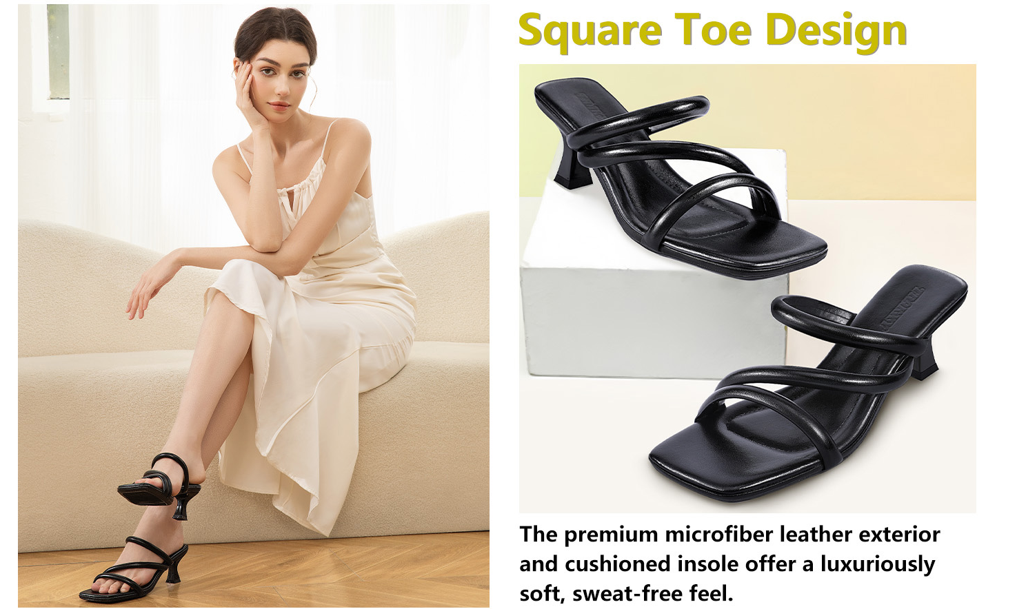 Zelaprox Square Toe Kitten Heel Sandals