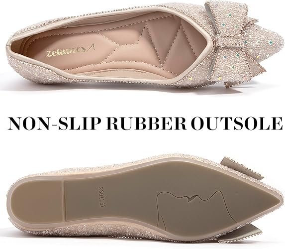 6 reviews for Zelaprox Dressy Comfort Flats for Women – Silver Bowknot