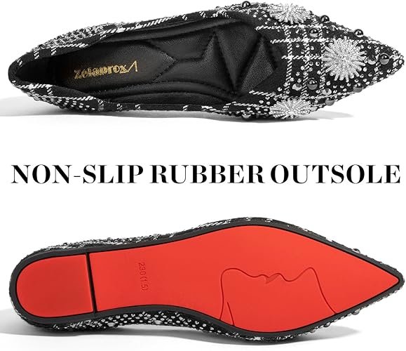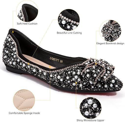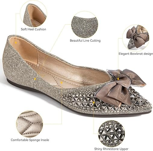 Sparkly flats with rhinestone details. They’re soft and flexible. Plus, they’re breathable—great for all-day comfort. Perfect for easy style.